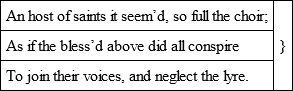 ‘Thus while I sat intent to see and hear,And drew perfumes of more than vital air,All suddenly I heard the approaching soundOf vocal music, on the enchanted ground: