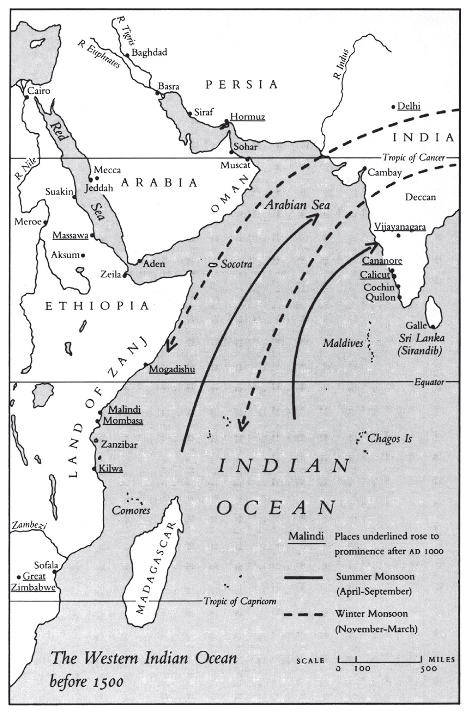 Until the ‘Age of Discovery’, there had been a thousand years of almost total ignorance in Europe about the Indian Ocean and the lands encompassing it. Once, during the heyday of the Roman empire, a flourishing trade had existed with the East, conducted mainly by Greek mariners who had learned how to use the monsoons.5 They brought back jewels, cinnamon, perfumes and incense, as well as silks and diaphanous Indian cloth much sought after by the women of Rome. But with the collapse of classical civilization in Europe, all the knowledge acquired by the Greeks was lost to Europeans.6