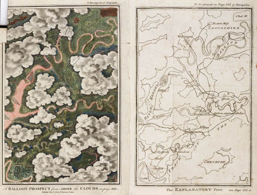 The same sense of escaping into an utterly new world is displayed by Thomas Baldwin’s Airopaedia, or Narrative of a Balloon Excursion from Chester in 1785. This is his account of a single flight made on 8 September 1785, flying northwards above the river Mersey, from Chester to Warrington in Lancashire. It must be one of the most remarkable books about the experience of ballooning ever written. It also included flight maps, and the first aerial drawings ever made from a balloon basket.