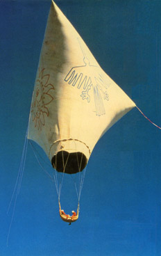 It has been suggested that the Nazca designs were made by visiting aliens, hovering in flying saucers.fn3 But the modern balloonist Julian Nott successfully invented a huge smoke balloon, constructed purely from local materials, to prove that human beings could overfly and supervise the carvings even in the fifth century AD.9