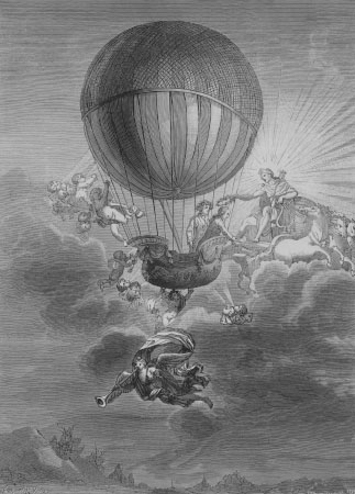 Dr Charles’s brilliant account of this ascent was widely published in both Britain and France, and catches a euphoric tone which never quite disappears from subsequent balloon accounts. He had laid in supplies for an aerial journey of many hours – fur coats, cold chicken and champagne. But what he actually tasted was that existential substance: