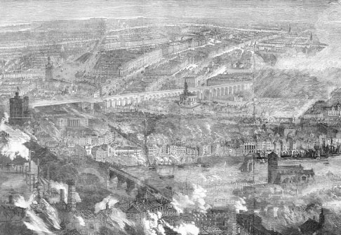 The fire’s impact was so great that a national disaster fund was launched to relieve the destitute citizens, and the first contribution was made by Queen Victoria herself. The Illustrated London News reported a striking example of Victorian philanthropy: ‘The public sympathy for the numerous poor families, who were rendered destitute by this terrible catastrophe, was displayed in the most marked manner throughout the kingdom. Upwards of £11,000 were subscribed for their relief. No less than eight hundred families applied for assistance from the funds …’ Money was also given to institutions like the Newcastle Infirmary and the Gateshead Dispensary. The image of the burning northern industrial city, with its displaced citizens wandering the streets like lost souls in purgatory, struck very deep. It was said that Queen Victoria, in an unprecedented departure from royal protocol, ordered that the royal train on the way to Balmoral should halt on the famous High Level Bridge above Gateshead so she could look down at the devastated city and weep.