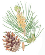The Scots pine is our only truly indigenous pine, native in parts of Scotland and widely planted and naturalised elsewhere. The needles are quite distinctive, being much shorter than those of other species of pine, grey-green in colour and arranged in rather twisted pairs along the twigs. But the needles of any type of pine will do for cooking, provided they are gathered when fairly young, between April and August.