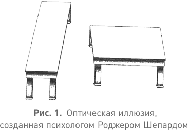 Эта иллюзия основана на том факте, что механизм нашего восприятия решает, что на левой стороне картинки мы смотрим на край стола, а на правой – на его боковую сторону. Мозг устроен таким образом, что он зрительно удлиняет линии, которые «удаляются» от нашего взгляда. И это хорошо. Наше восприятие сформировалось в трехмерном мире, и если бы мы автоматически не корректировали информацию, которая попадает на сетчатку глаза, мы бы думали, что объекты, которые кажутся меньше из-за того, что находятся дальше, на самом деле меньше. Но, помогая нам правильно воспринимать реальность, подсознание запутывает нас, когда дело касается двухмерных картинок. Мозг автоматически увеличивает размер объекта, находящегося дальше, и потому на картинке левый стол кажется длиннее, чем он есть, а стол, изображенный справа, – шире, чем он есть. Когда же объекты на самом деле не отдалены в пространстве, наша автоматическая коррекция приводит к неверному восприятию.