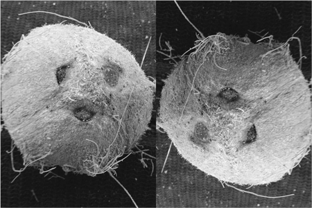 На самом деле достаточно просто нарисовать три точки на кокосе, расположенном как на фото слева, чтобы увеличить прибыль[20].