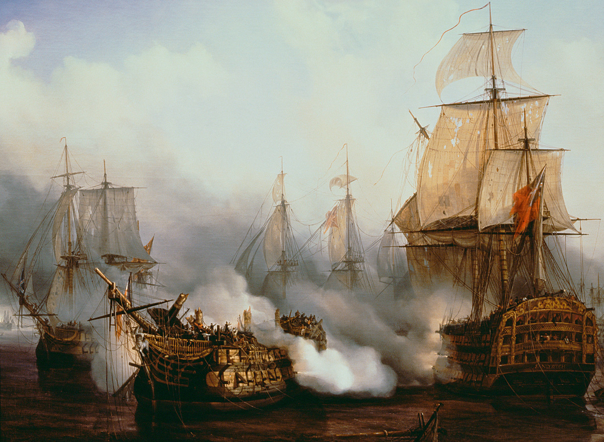 A painting by the French artist Louis Philippe Crépin (1772–1851) depicts the action at the Battle of Trafalgar in 1805. The battle demonstrated the extent to which modern naval war could only be fought effectively by wealthy states with developed industries, able to supply and pay for large and well-equipped fleets.