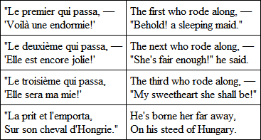 I was thinking, I remember, how fine it would be to be a knight on a horse of Hungary (though I am not aware that the horses of that country are finer than elsewhere, except in songs), and to stoop down beside the road and catch up the sleeping maiden, – and I knew how she would be looking as she slept, – and ride away with her no one could tell where, into some land of gold and flowers.