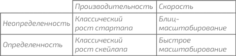 Блиц-масштабирование – это не только вопрос быстрого роста. Каждая компания одержима ростом. В любой индустрии вы живете и умираете под номером в рейтинге – это показатель числа привлеченных пользователей, маржи, уровня роста и так далее. Однако сам по себе рост не является блиц-масштабированием. Скорее блиц-масштабирование состоит в том, чтобы в условиях неопределенности отдавать приоритет скорости, а не производительности. Мы можем лучше понять блиц-масштабирование через сравнение с другими формами быстрого роста.