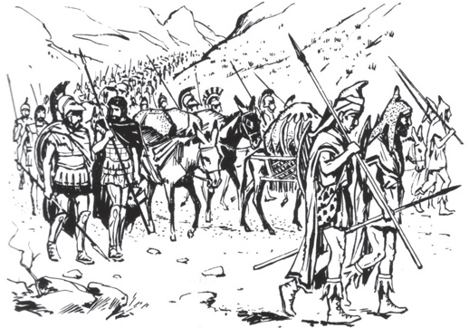 Таким образом, воины вербовались и собирались с соблюдением всех правил конспирации. Так для похода было собрано 13 тысяч воинов, в том числе 11 тысяч гоплитов и две тысячи пельтастов [3]. Никакой единой четкой структуры эта армия изначально не имела – отрядами воинов командовали люди, их набиравшие. Отряды делились на более мелкие тактические единицы – лохи, которыми командовали лохаги. Из текста «Анабасиса» остается неясно, закупил ли Кир для воинов оружие или они прибыли на службу со своим [4].