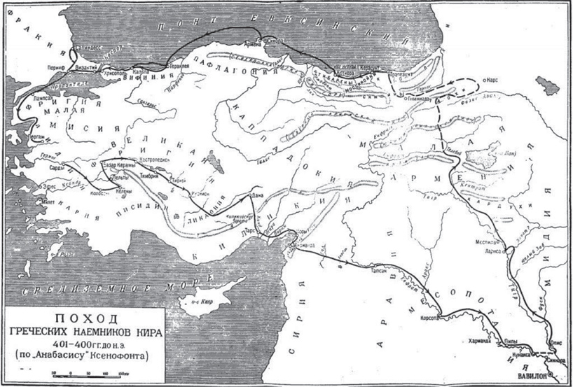 Афинянин Ксенофонт вошел в историю как древнегреческий писатель, участник невероятного похода греческих наёмников вглубь Персидской империи. В конце V века до н. э. они прошли всю Малую Азию (ныне территория Турции) и дошли до центра Вавилонии (современного Ирака), а потом с боями прорвались к Чёрному морю и вернулись на родину, в Элладу. Особенностью этого похода стало то, что воины сначала утратили своего нанимателя (а с ним и первоначальную цель похода), а затем и своих командиров. Так они превратились в «бродячую» армию наёмников, возможно, первую в мире – но далеко не последнюю. И важно то, что мы знаем о ней не в пересказе, а от очевидца.