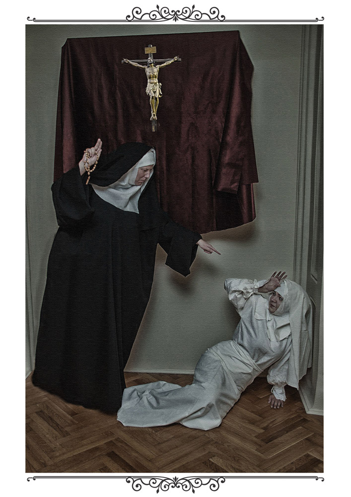 Нарушая покой ночи, в коридоре послышались тяжёлые гулкие шаги, в замочной скважине противно заскрежетал ключ, и дверь с мерзким скрипом отворилась. На пороге появилась пожилая объёмная аббатиса в тёмной рясе.