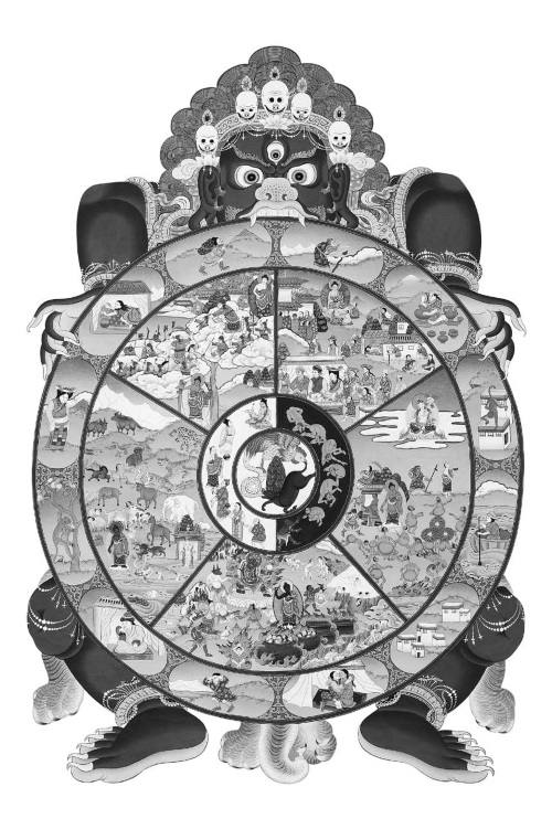 В‑третьих, необходимо все лучше понимать недостатки циклического существования – сансары. Если бы непостоянство не имело последствий, а со смертью исчезало все, как гаснет огонь или испаряется вода, было бы слишком просто. Но ум, чья природа пустотна, никогда не умирает. Соединение ума и тела, которое образовалось из-за сильного цепляния и по сути своей иллюзорно, в момент смерти разбивается и рассеивается. Затем снова различные возможности и причины – карма, наклонности и загрязнения – приводят к рождению существа в одном из шести миров сансары.