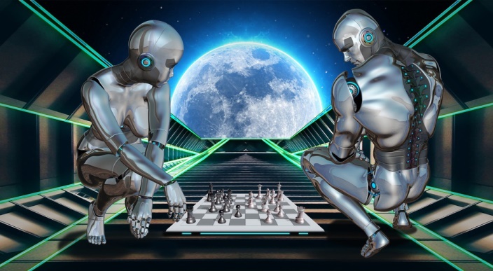 – Эй, гроссмейстеры, будете помогать осматривать корабли или у Вас турнир нельзя прерывать. – Спрашиваю андроидов, вот до чего жизнь довела, приказать нельзя роботу, а вдруг обидится и Армагеддон устроит.