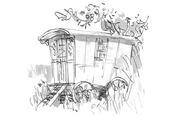 А в кибитке жили мы, и она была нам родным домом. Это была настоящая старая цыганская кибитка с большими колёсами, вся красиво разрисованная жёлтыми, красными и голубыми узорами. Папа говорил, ей лет сто пятьдесят, не меньше. Немало цыганских детишек, говорил он, родились и выросли в её деревянных стенах. Когда-то давно наша кибитка, запряжённая конём, прогромыхала, должно быть, тысячи миль по дорогам и тропинкам Англии. Но теперь её странствия были окончены, деревянные спицы в колёсах начали гнить, и папа подпёр её снизу кирпичами.