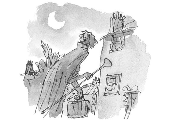 – Я стоял за нашей кибиткой, – сказал папа, – и была ясная лунная ночь, и я посмотрел вверх и вдруг увидел, как с вершины холма сбегает кто-то невероятно высокий. Он бежал вприпрыжку, гигантскими шагами, а за ним развевался чёрный плащ, как будто птичьи крылья. В одной руке у него был чемодан, а в другой – труба, и когда он добежал до высоченной живой изгороди на краю поля, то попросту через неё перешагнул.