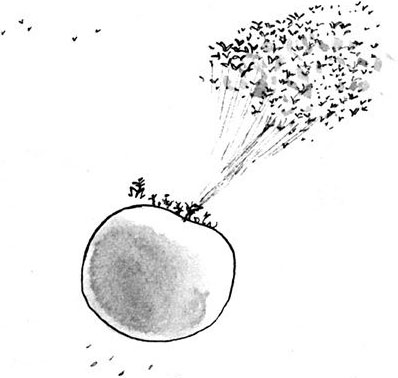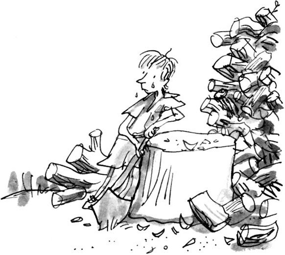 Началось все это безумно жарким днем в разгаре лета. Тетя Пика, тетя Плюха и Джеймс были в саду. Джеймса, как всегда, нагрузили работой. На сей раз он должен был колоть щепки для растопки кухонной плиты. А тетя Пика и тетя Плюха уютно утроились в шезлонгах поблизости, потягивали шипучий лимонад из больших стаканов и следили, чтобы Джеймс ни минуты не отдыхал.