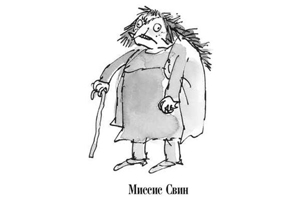 А мистер Свин даже не утруждал себя широко разевать рот, когда ел. И потому-то (а ещё оттого, что он совсем не мылся) в волосах по всему его лицу застряли сотни «сувениров» на память о многочисленных завтраках, обедах и ужинах. Это, правду сказать, были не такие уж и большие куски, потому что он имел обыкновение смахивать их рукой или рукавом, когда ел. Но если бы вы решили разглядеть его поближе (не самое разумное желание, впрочем), то обнаружили бы присохшие к волосам мелкие остатки яичницы и шпината, и томатного кетчупа, и рыбных палочек, и куриных потрохов, и прочей отвратительной еды, которую с таким удовольствием потреблял мистер Свин.