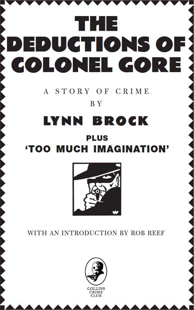 The Deductions of Colonel Gore was reissued as Book 31 in Collins’ popular Detective Story Club in July 1930, and was joined by reprints of his second and third cases the following year. This new edition now includes for the first time the only published Colonel Gore short story, ‘Too Much Imagination’, which first appeared in Flynn’s weekly magazine on 30 January 1926. It follows Gore’s (by now more serious) deductions in a country house murder case. Connoisseurs of his adventures will be interested to note that the story appears to be a sketchy draft of Colonel Gore’s Third Case (1927, published in the USA as The Kink)—as well as the playful appearance of the author’s own home, The Jolly Farmer. It was in Guildford that McAllister wrote his first ‘Lynn Brock’ mystery and it is thus not surprising that most of his Colonel Gore adventures are set in or near Surrey.