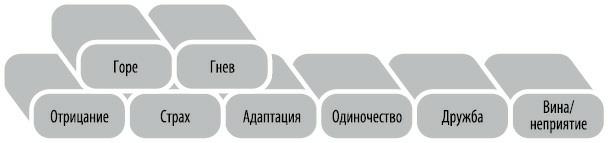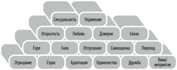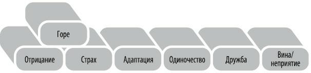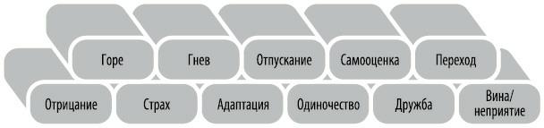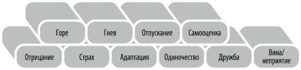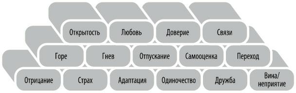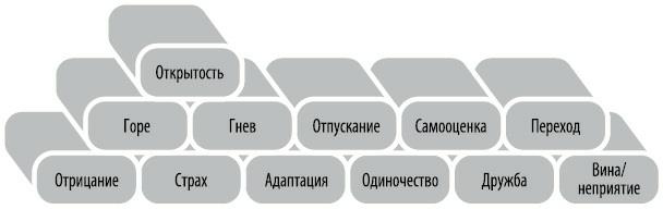 Следующие несколько блоков представляют «ямы развода» – одиночество, потеря дружеских отношений, вина и неприятие, горе, гнев и отпускание. Эти блоки затрагивают сложные чувства и довольно тяжелый период в жизни. Понадобится время, чтобы пройти через них, прежде чем вы снова начнете чувствовать себя хорошо.