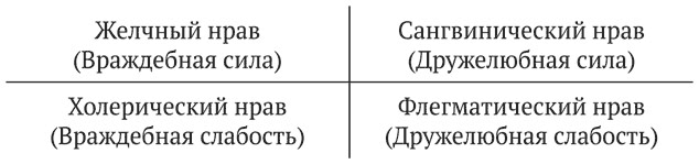 Эти четыре квадранта были известны еще на заре человеческого самоосознания. В терминологии средневековой психологии «нравов» эти четыре импринтных типа известны как:
