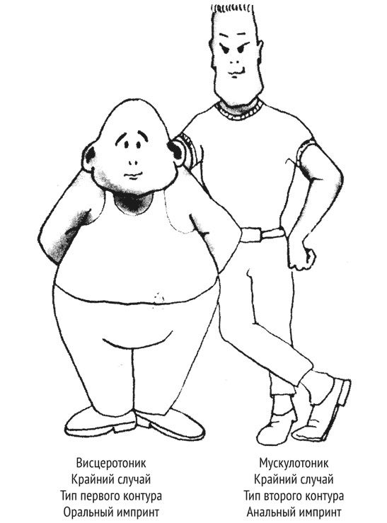 Люди (экстремальные случаи), у которых самый тяжелый импринт приходится на территориально-эмоциональный контур, обычно являются мускулотониками. Это означает, что большая часть их внимания и энергии сосредоточена в мышечных системах защиты-нападения. Поэтому они обычно имеют средний вес – они достаточно тяжелы, чтобы их было трудно сбить с ног, и достаточно легки, чтобы быть подвижными и мускулистыми. Они часто становятся культуристами, тяжелоатлетами и т. д. и необычайно увлечены демонстрацией своей физической силы. (Даже простой обмен рукопожатиями является для них не проявлением дружелюбия, а скорее силовым состязанием.)