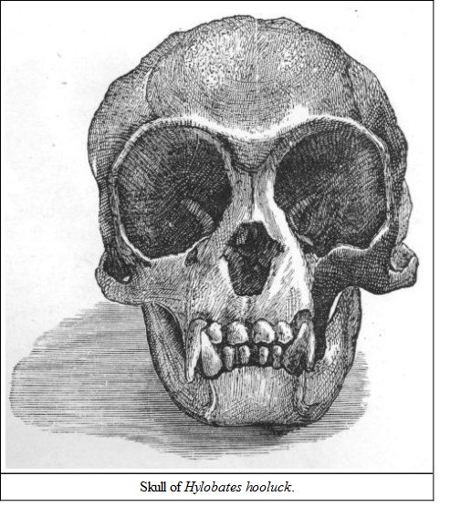 Although numerically the Langurs or Entellus Monkeys form the most important group of the Quadrumana in India, yet the Gibbons (which are not included by Jerdon) rank highest in the scale, though the species are restricted to but three—Hylobates hooluck, H. lar and H. syndactylus. They are superior in formation (that is taking man as the highest development of the form, to which some people take objection, though to my way of thinking there is not much to choose between the highest type of monkey and the lowest of humanity, if we would but look facts straight in the face), and they are also vastly superior in intellect to either the Langurs or the Macaques, though inferior perhaps to the Ourangs.