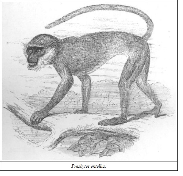 NO. 4. SEMNOPITHECUS vel PRESBYTES ENTELLUSThe Bengal Langur (Jerdon's No. 1)NATIVE NAMES.—Langur, Hanuman, Hindi; Wanur and Makur, Mahratti; Musya, Canarese.