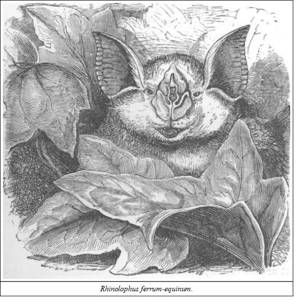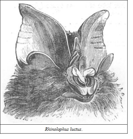 GENUS RHINOLOPHUSNose-leaf cordate, or semi-orbicular, bi-lobed in front of the nostrils; a longitudinal crest along the nose and an erect frontal leaf posteriorly more or less lanceolate.—Jerdon.
