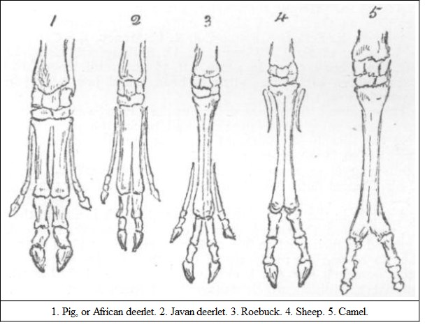 Osteology of the feet in Ruminantia, Artiodactyla .—The following illustrations were inadvertently omitted from the text in the section on the Artiodactyla.