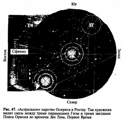 Пояс Ориона («Ростау» в небе), добавляет весомости предположениям, что в распоряжении посвященных имелся некий подземный ход, через который они могли тайно пробраться от Сфинкса к внутренним помещениям пирамиды.