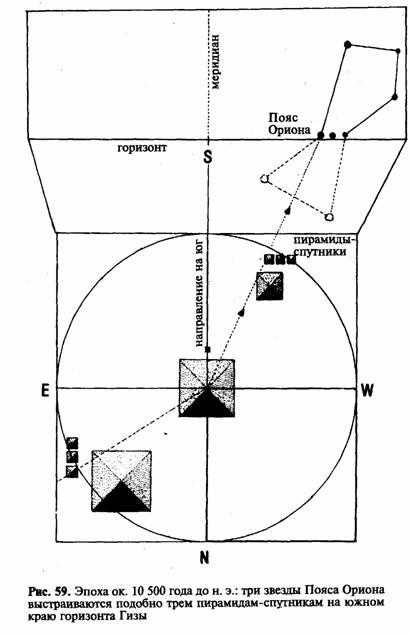 Звезды – по местам!Стоит визиру Пояса Ориона спуститься на место, соответствующее 10 500 году до н. э. – Первому Времени, – и, как будто в награду за правильную догадку, начинают звонить и мигать все звонки и лампочки некрополя Гизы – точь-в-точь как в игральном автомате, когда срываешь банк.