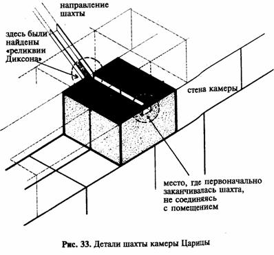 Неизвестная темнотаВ отличие от шахт камеры Царя, шахты камеры Царицы: а) не имеют выхода на поверхность монумента и б) не имели первоначально и отверстия в известняковых стенах камеры. Вместо входа строители оставили последние 12 сантиметров блока целыми, что делало шахту невидимой и недоступной для незваного гостя.