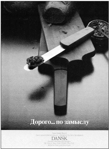 Сообщение, которое, предположительно, передается этой рекламой в Dansk, конечно, состоит в том, что «дорогой = лучший».