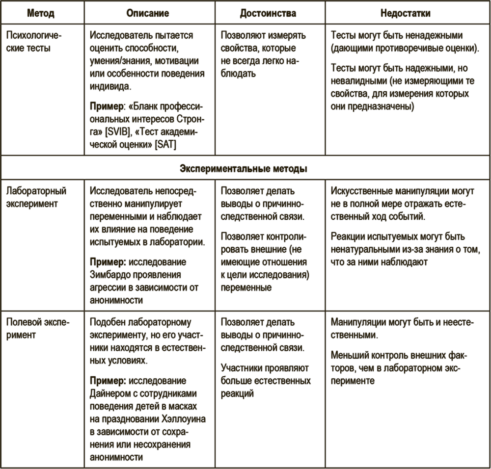Таблица 1.2. Методы исследования, используемые социальными психологами