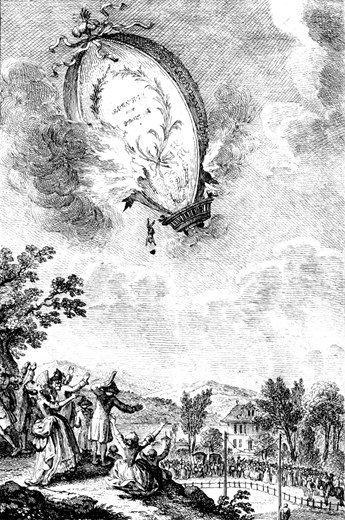 Гибель Пилатра де Розье, чей воздушный шар загорелся во время неудачной попытки перелета через Ла-Манш 15 июня 1785 года. До этого воздухоплаватель похвалялся, что при попутном ветре смог бы пересечь Атлантику за два дня. Катастрофа положила предел доселе неуклонному росту всеобщей одержимости воздухоплаванием, на пике которой поднимались вопросы о возможностях применения соответствующих научных достижений в военном деле. Однако в итоге все свелось к попыткам решения более частных и во всех смыслах приземленных проблем вроде выработки способов навигации воздушных шаров при встречном ветре.