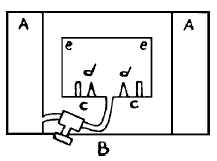 Ворвань вливается в кольцеобразный сосуд А. Масло переходит оттуда через трубку В и расходится по поверхности плиты С, ограниченной бортами, dd – выступы, служащие проводниками тепла; ее – оловянный дымоход для огня с отверстиями в основании его.