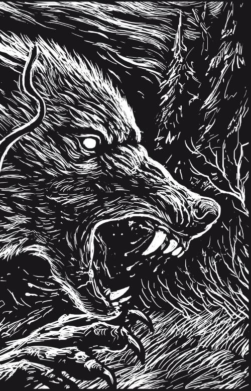 Так мы беседовали, но вдруг де Монтур помрачнел, и ответы его сделались крайне односложными. Взошедшая луна заглянула в зарешеченное окно, свет упал на лицо бедного нормандца. И тут когтистая лапа ужаса сжала мое сердце. На стене позади него проявилась тень – ее очертания отчетливо напоминали волчью голову!