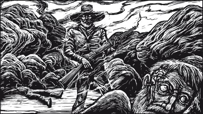Рука Кэла внезапно дрогнула из-за странного поведения Исава Брилла. Вместо того, чтобы выстрелить или отскочить в укрытие, мужчина шел прямо на него, держа винтовку на сгибе руки, с этой проклятой ухмылкой на небритом лице. Он сошел с ума? Неужели не видит, что его враг снова встал, полный жизни, со взведенным курком у сердца? Брилл, казалось, смотрел не на него, а в сторону, на то место, где только что лежал Рейнольдс.