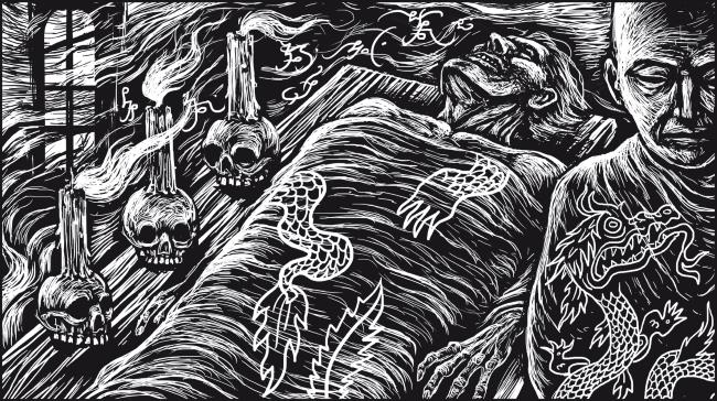 Он поднял голову, и я увидел, что его лицо бледное и изможденное.