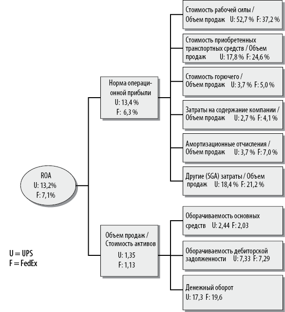 Рис. 2.3. Анализ того, почему у UPS рентабельность активов выше, чем у FedEx
