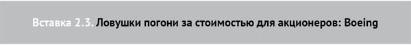 Так, их установление в отношении прибыли (в погоне за ее максимизацией) может вызвать такое поведение сотрудников организации, которое будет подрывать возможность достижения этой цели. Действительно, множество фирм, всячески подчеркивающих важность своей миссии и формально отодвигающих прибыльность на задний план, как раз являются наиболее успешными в деле увеличения акционерной стоимости компании. И наоборот, множество тех, кто постоянно твердит о прибыли и росте стоимости как о приоритетах, оказываются поразительно неуспешными на практике20 (самые яркие примеры тому – Enron, BP и Lehman Brothers). В качестве иллюстрации этой проблемы можно рассмотреть случай корпорации Boeing (см. вставку 2.3)21.