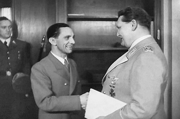 Имперский министр народного просвещения и пропаганды, рейхсляйтер, гауляйтер Берлина, доктор философии Пауль Йозеф Геббельс поздравляет с днем рождения рейхсмаршала, главнокомандующего люфтваффе, имперского уполномоченного по выполнению 4-хлетнего плана, постоянного заместителя фюрера в совете обороны рейха, главного имперского лесничего Германа Вильгельма Геринга