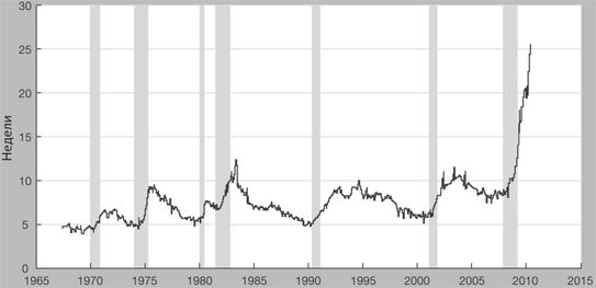 Медианная продолжительность безработицыИсточник: Министерство труда США, Бюро трудовой статистики США
