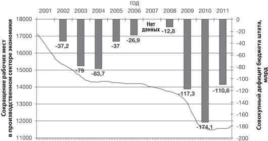Сокращение рабочих мест в производственном секторе экономики объясняет дефицит бюджета штата
