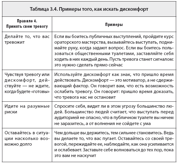 Таблица 3.4. Примеры того, как искать дискомфорт