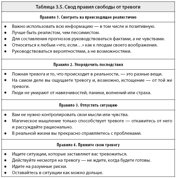 Таблица 3.5. Свод правил свободы от тревоги