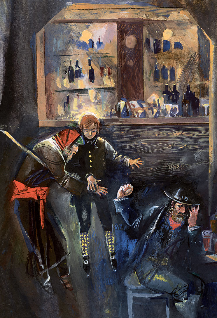 Чёрный Пёс выскочил на дорогу, и только мы его и видели. А капитан застыл в дверях, тупо глядя на вывеску. Затем он провёл рукой по лицу и ухватился за дверной косяк.