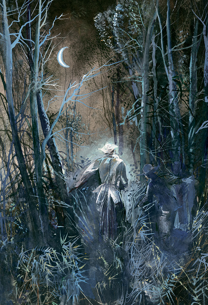 И вот они появились. Их было семь или восемь. Впереди шёл человек с фонарём, а среди других я разглядел слепого.
