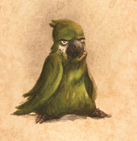 Попугай Джона Сильвера, названный в честь погибшего пирата, который спрятал свои сокровища на необитаемом острове и передал карту Билли Бонсу. У нас он так и остался зелёным попугаем.