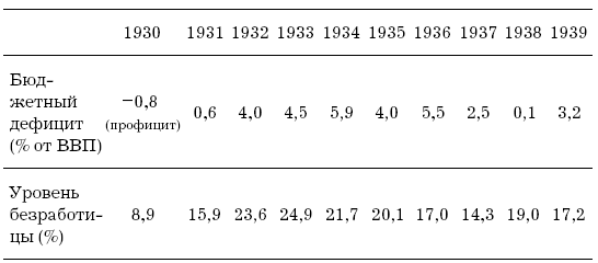 Дефицит федерального бюджета и безработица в США в 1930–1939 гг.